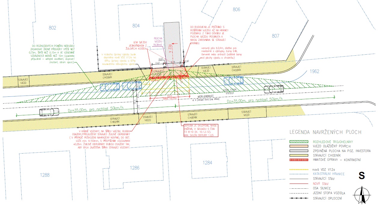 - dokumentaci připojení, z níž jsou patrné parametry připojení (se zakreslením rozhledových poměrů a vlečných křivek)