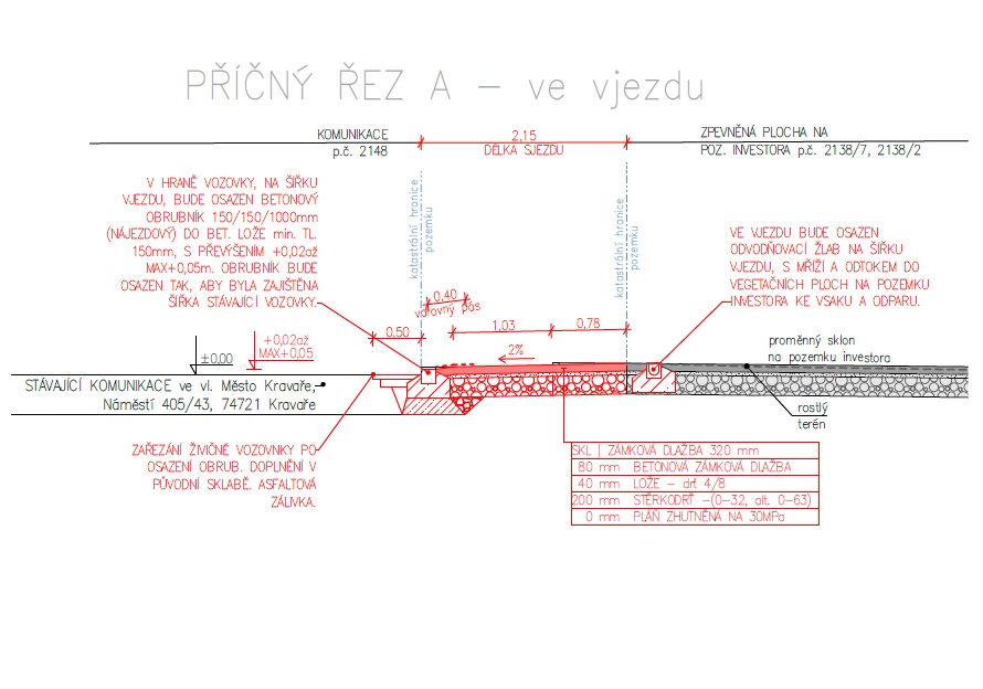 Projektová dokumentace, nový vjezd k pozemku, okres Opava